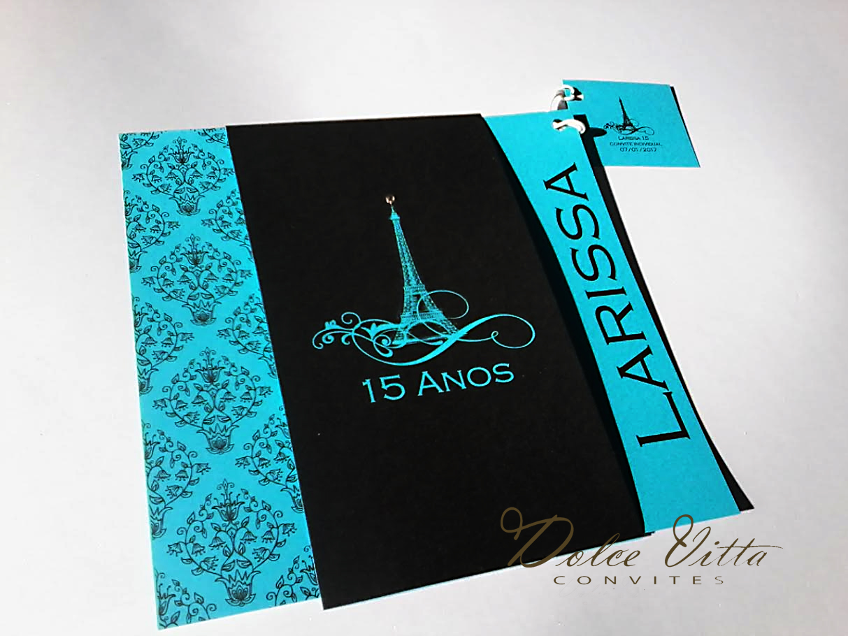 Dolce Vitta Convites Novo Modelo Paris Azul E Preto Cod 300 - Convite de festa de quinze anos.